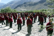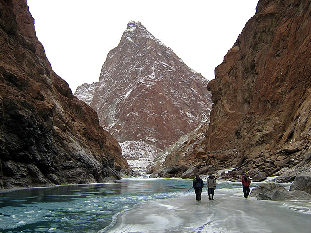 As the Zanskar road winds down the steep slopes of the watershed to the head of the Stod Valley, one of Zanskar's main tributary valleys, the majestic "Drang-Drung" glacier looms into full view. A long and winding river of ice and snow, the Drang-Drung" is perhaps the largest glacier in Ladakh, outside the Siachen formation. It is from the cliff-like snout of this extensive glacier that the Stod or Doda River, the main tributary of river Zanskar, rises.